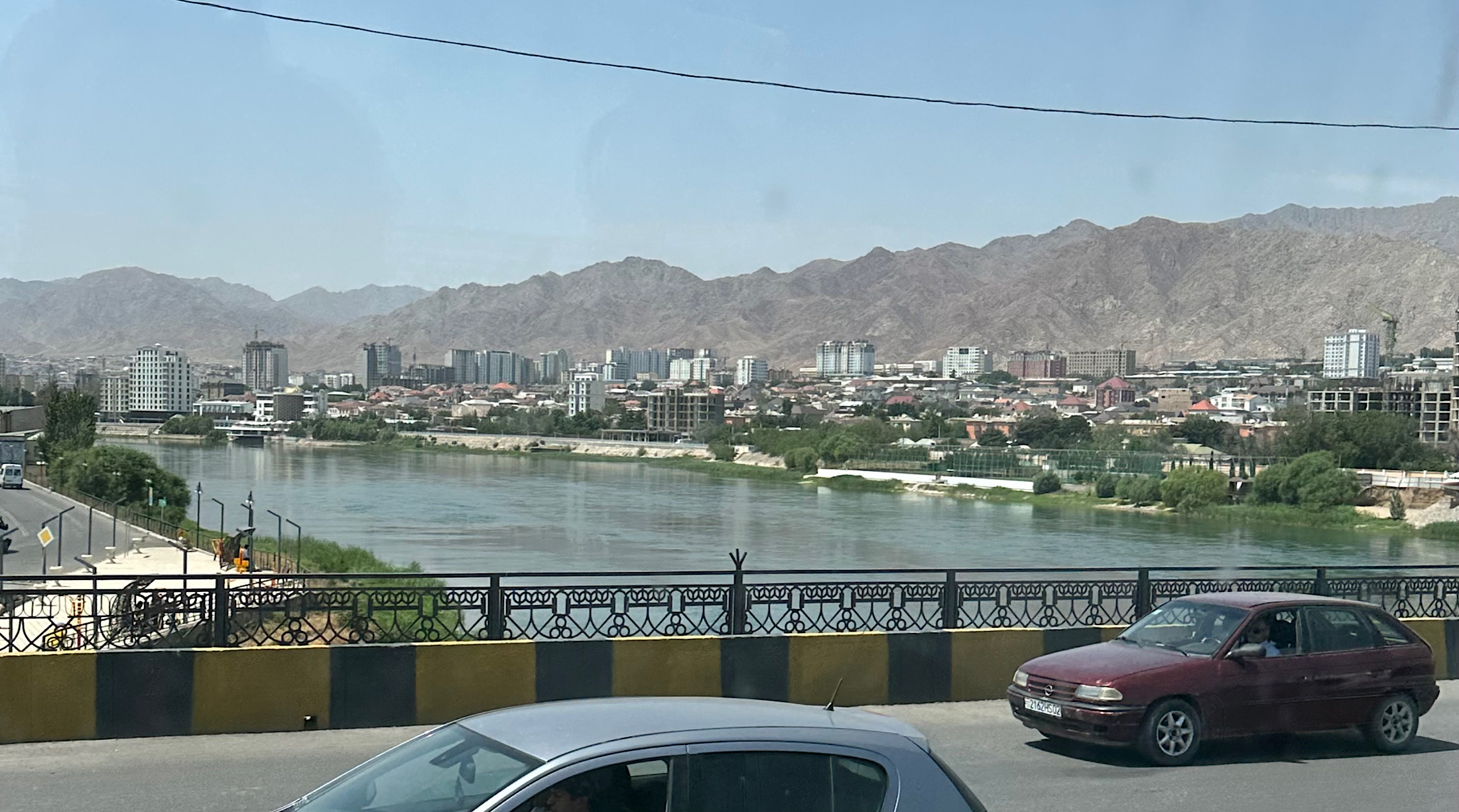 IMG_6756 Published June 2, 2025 at 2200 × 1225 in May 10, 2025: Our Quick Visit to Tajikistan (#3 of 5). ← Previous / Next → The Syr-Darya River flows through downtown Khujand.