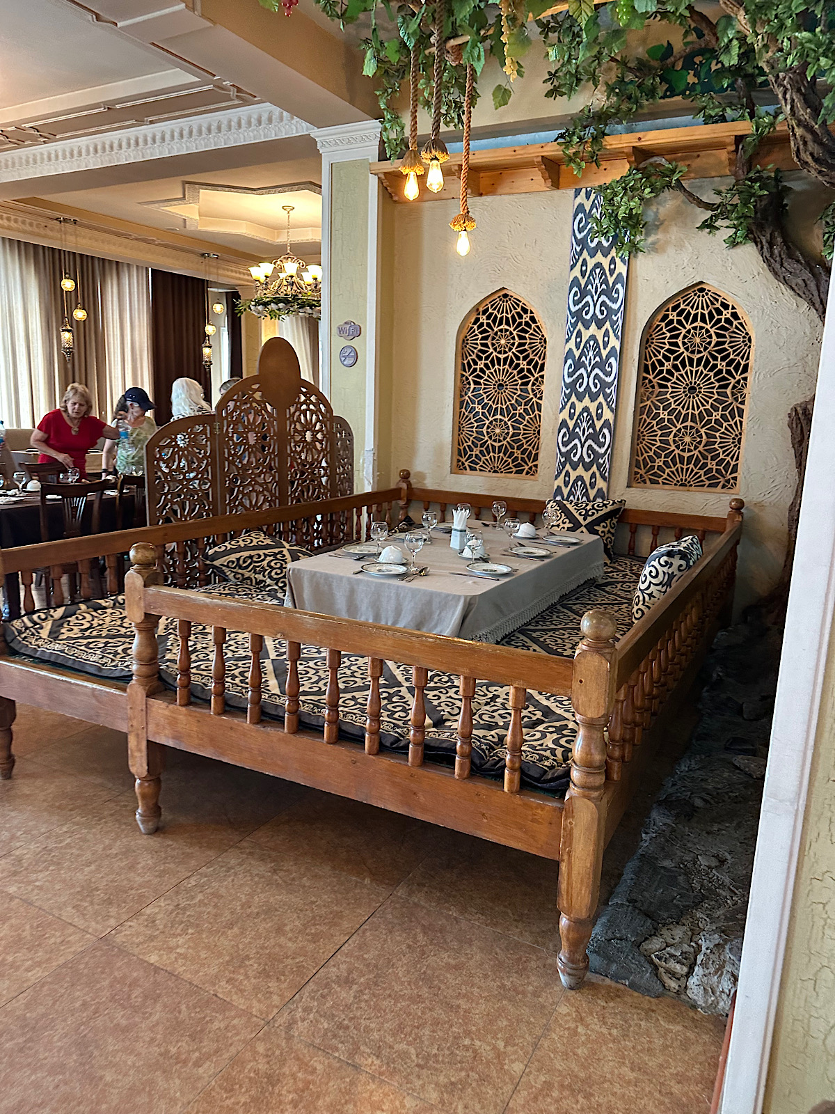 IMG_6762 Published June 2, 2025 at 1200 × 1600 in May 10, 2025: Our Quick Visit to Tajikistan (#3 of 5). ← Previous / Next → Locals tend to eat at these tables. Luckily we did not have to try it as most of us would not be able to get up again!