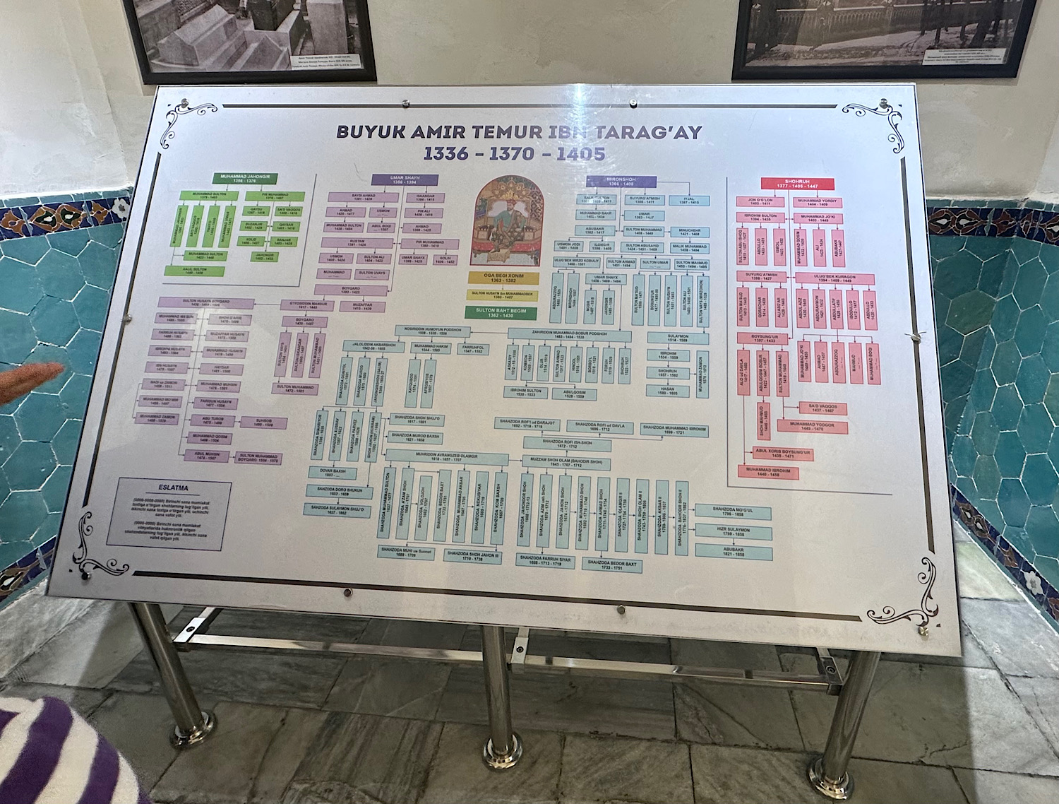 IMG_6883 Published June 8, 2025 at 1500 × 1138 in May 12, 2025: Exploring Samarkand in Southern Uzbekistan. ← Previous / Next → The huge family tree of Emir Timur (also spelled as Temür).