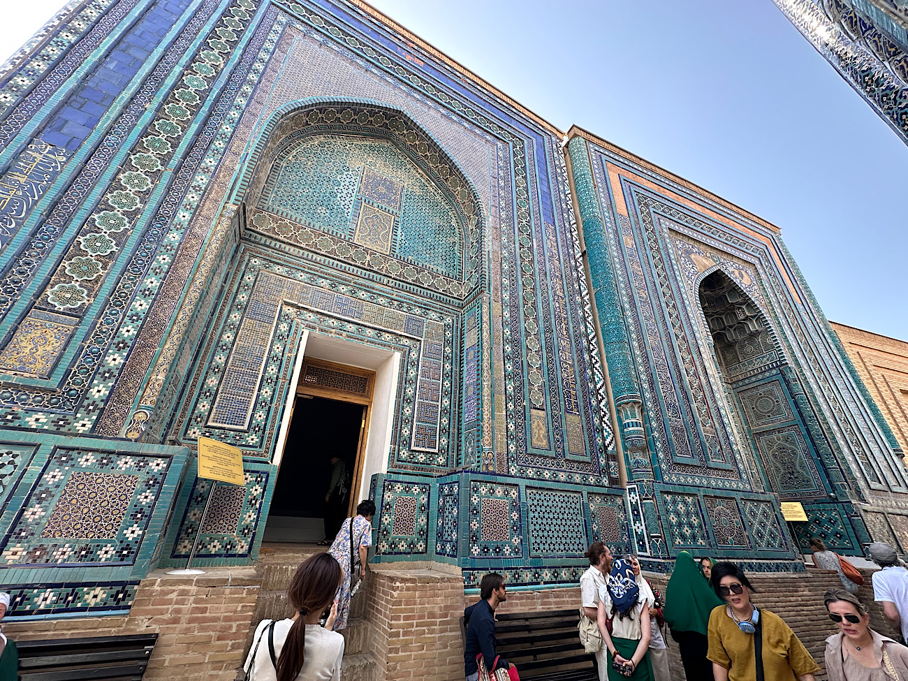 IMG_6911 Published June 10, 2025 at 1300 × 975 in May 12, 2025: Exploring Samarkand in Southern Uzbekistan. ← Previous / Next → Very elaborate designs with ceramic tiles are on the front of the buildings.