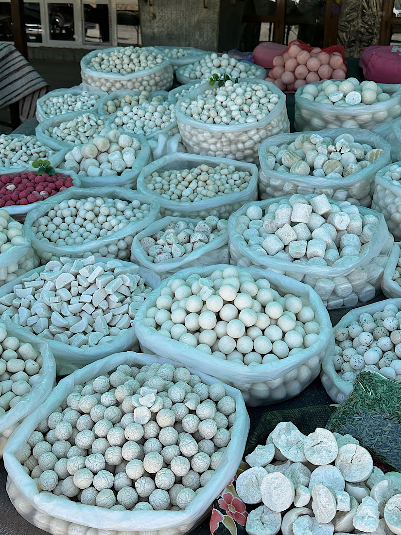 IMG_6952 Published June 11, 2025 at 825 × 1100 in May 12, 2025: Exploring Samarkand in Southern Uzbekistan. ← Previous / Next → These cheeses are of different types. One of our group tried one and said it was not good!
