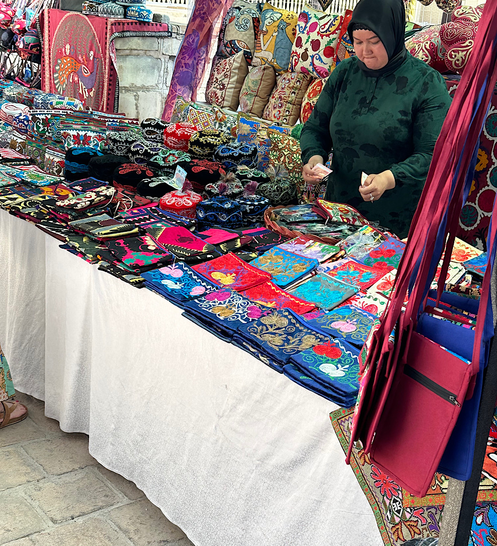 IMG_6975 Published June 12, 2025 at 1002 × 1100 in May 13, 2025: Road Trip to Shakhrisabz, the Birthplace of Timur ← Previous / Next → There are always vendors in the area of the attractions, plying their wares.