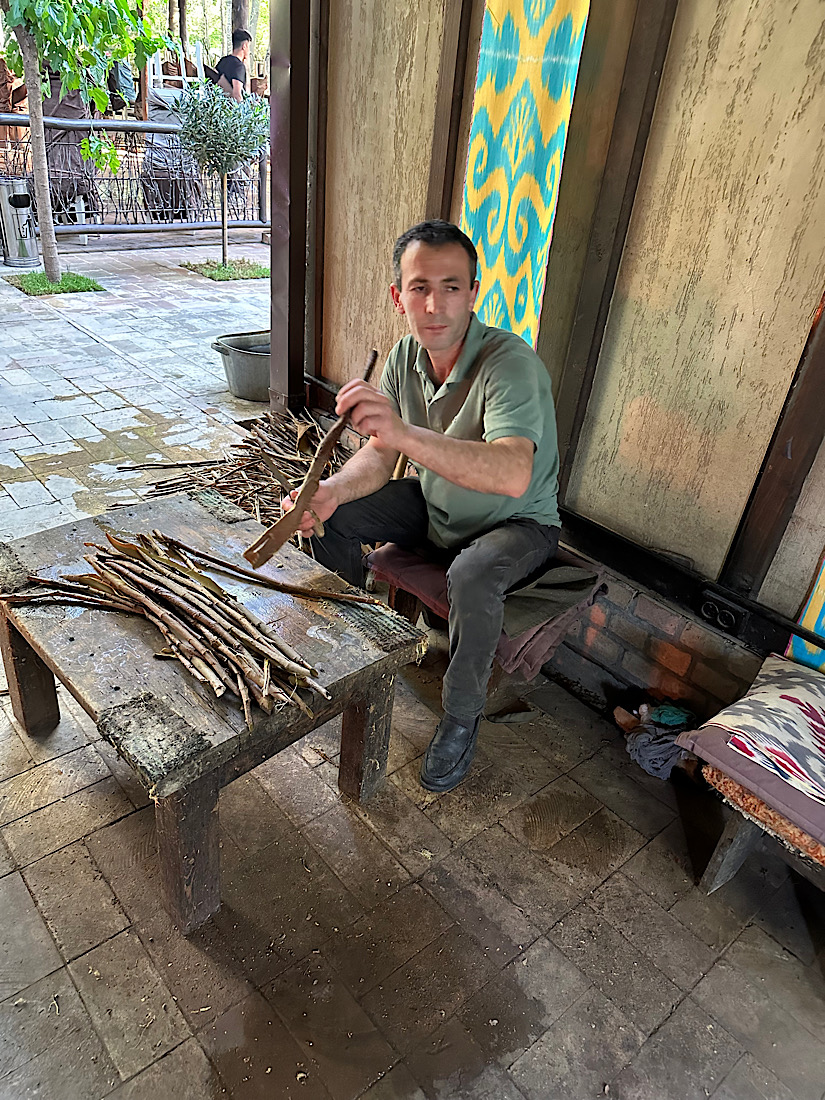 IMG_6990 Published June 12, 2025 at 825 × 1100 in May 13, 2025: Road Trip to Shakhrisabz, the Birthplace of Timur ← Previous / Next → Preparing the bark from a mulberry tree.