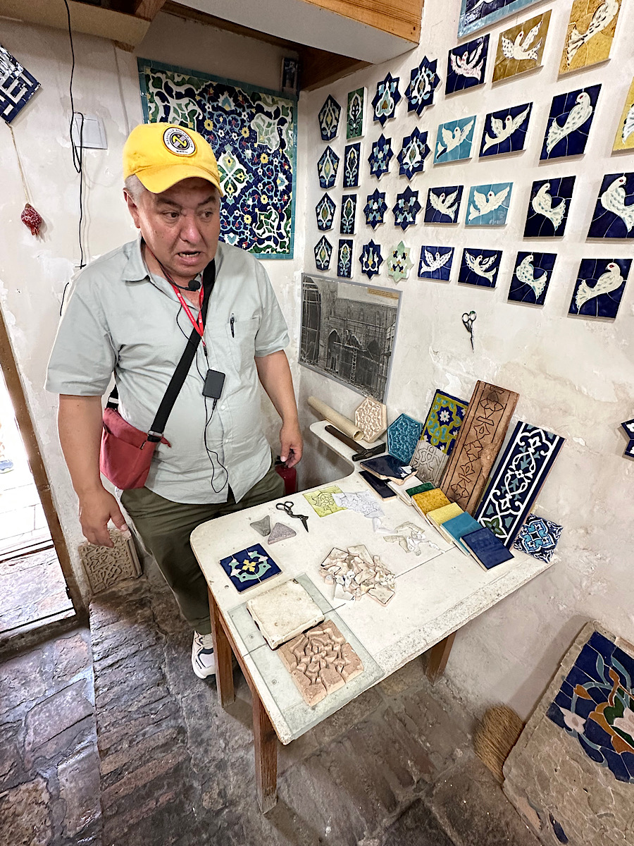 IMG_7029 Published June 13, 2025 at 900 × 1200 in May 14, 2025: Going to the Ancient City of Bukhara. ← Previous / Next → Furkat explains how the ceramic tiles are made-by hand!