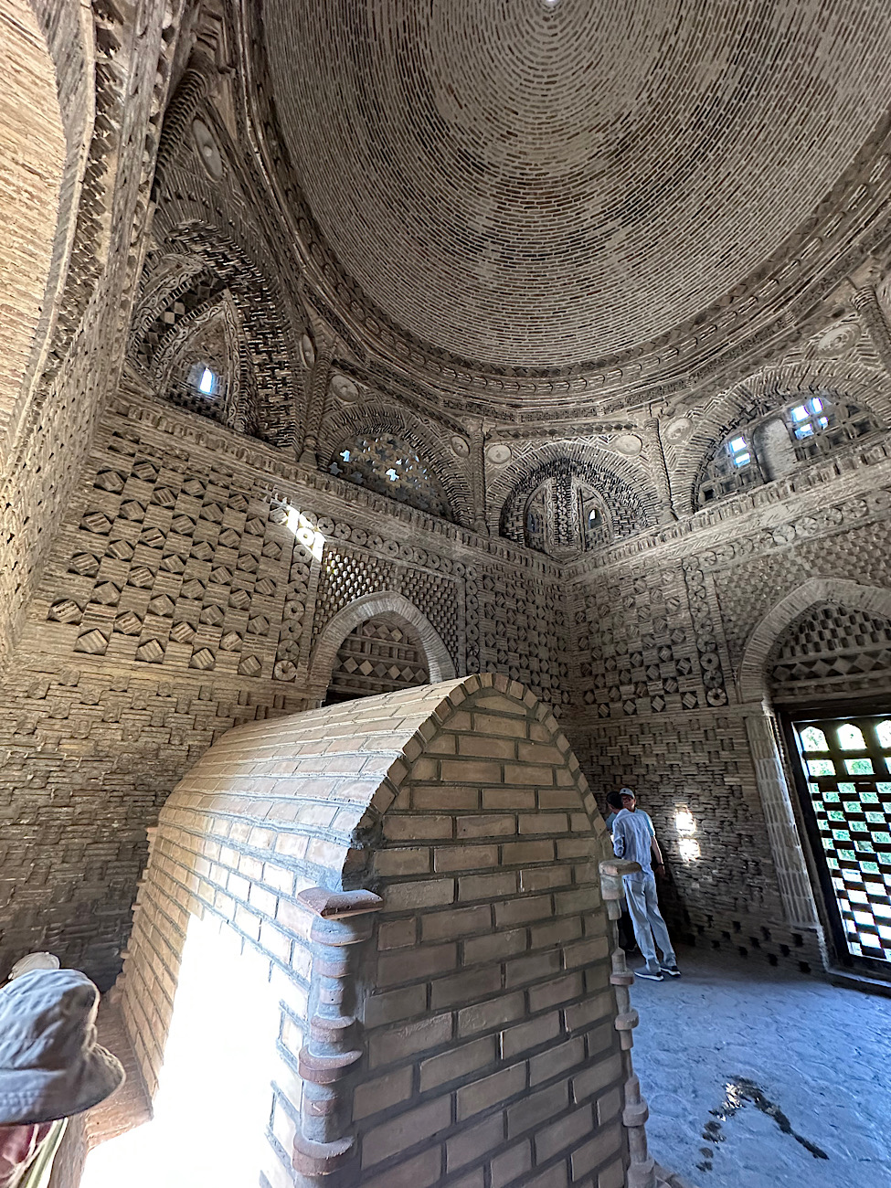 IMG_7107 Published June 15, 2025 at 975 × 1300 in May 14, 2025: Going to the Ancient City of Bukhara. ← Previous / Next → Interesting in that they are not sure who really is buried here. They believe it is Ismail (907) and his grandson, Nasr II (943).