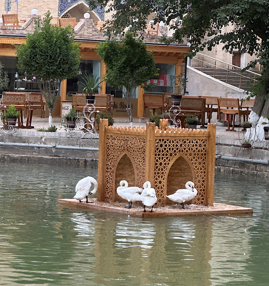 IMG_7282 Published June 20, 2025 at 1033 × 1100 in May 17, 2025: Early Morning in Bukhara Before Heading to Khiva. ← Previous / Next → Even the swans were not up and about yet.