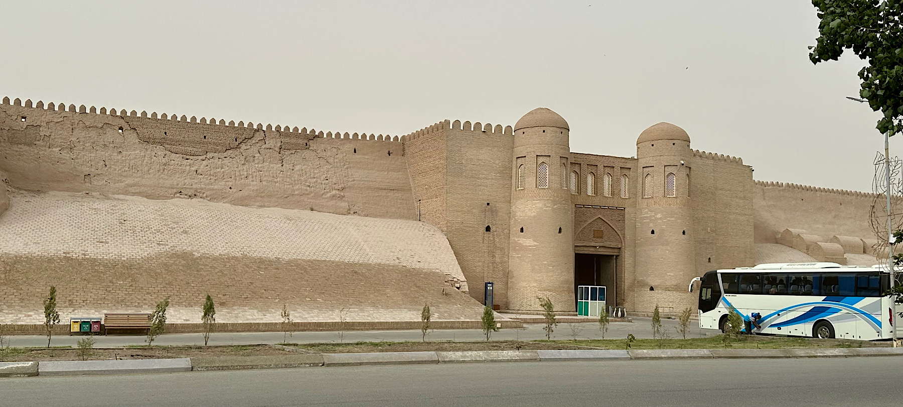 IMG_7314 Published June 20, 2025 at 1800 × 812 in May 17, 2025: Early Morning in Bukhara Before Heading to Khiva. ← Previous / Next → Our hotel was across the road from the walled city of ancient Khiva.