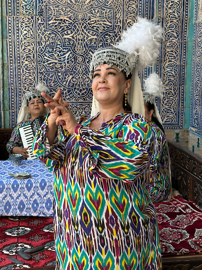 IMG_7380 Published June 22, 2025 at 825 × 1100 in May 18, 2025: Exploring the Ancient City of Khiva ← Previous / Next → Clicking her fingers to a musical beat. We could not replicate the sounds she made with her fingers.