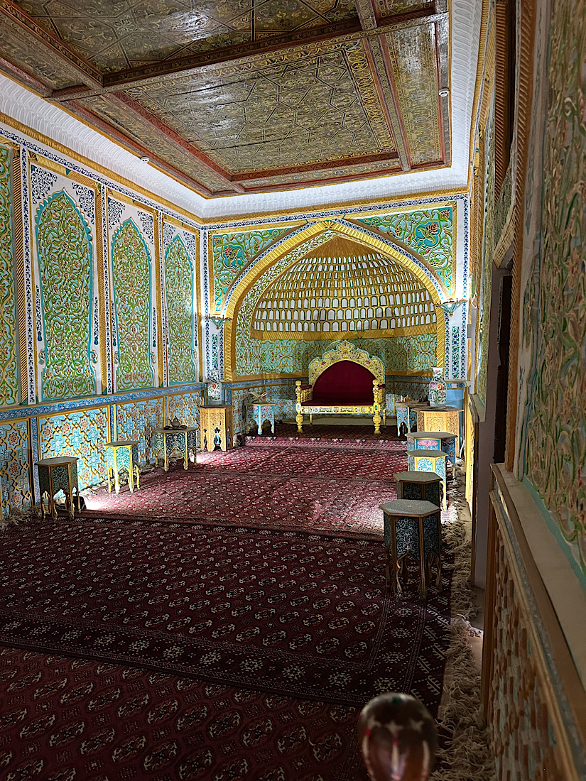 IMG_7416 Published June 22, 2025 at 825 × 1100 in May 18, 2025: Exploring the Ancient City of Khiva ← Previous / Next → The Khan’s throne room where he greeted people.