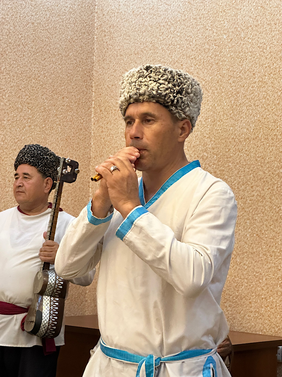 IMG_7450 Published June 23, 2025 at 975 × 1300 in May 18, 2025: Exploring the Ancient City of Khiva ← Previous / Next → Playing a flute.