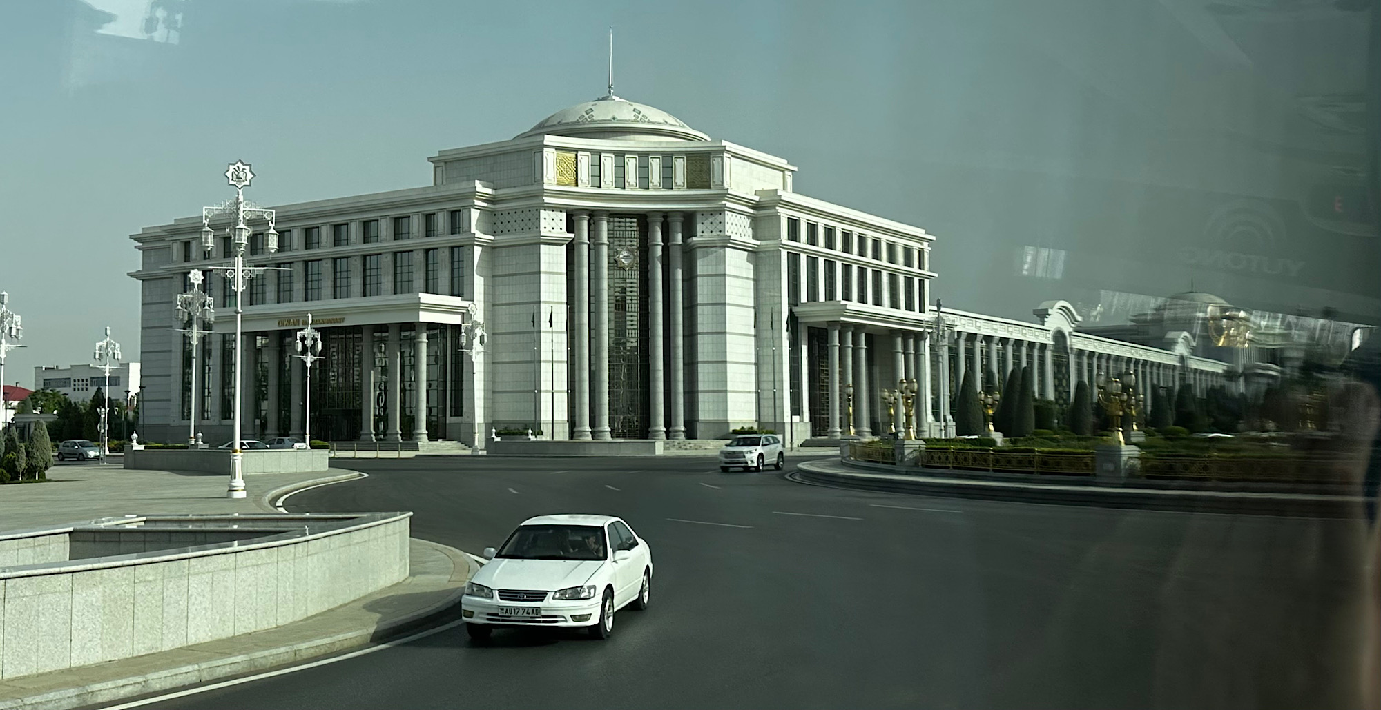 IMG_7592 Published July 2, 2025 at 2000 × 1029 in May 20, 2025: Turkmenistan- the Last of the Five Stans ← Previous / Next → White building, white car.