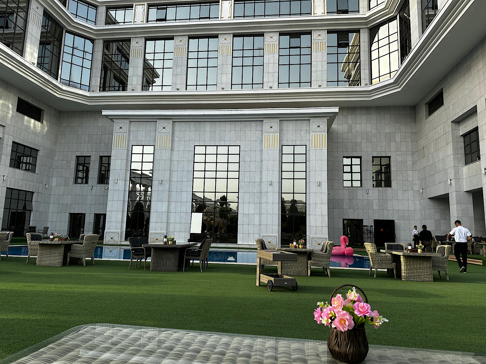 IMG_7595 Published July 2, 2025 at 1600 × 1200 in May 20, 2025: Turkmenistan- the Last of the Five Stans ← Previous / Next → Having a cocktail sitting next to the pool in the courtyard of the hotel.