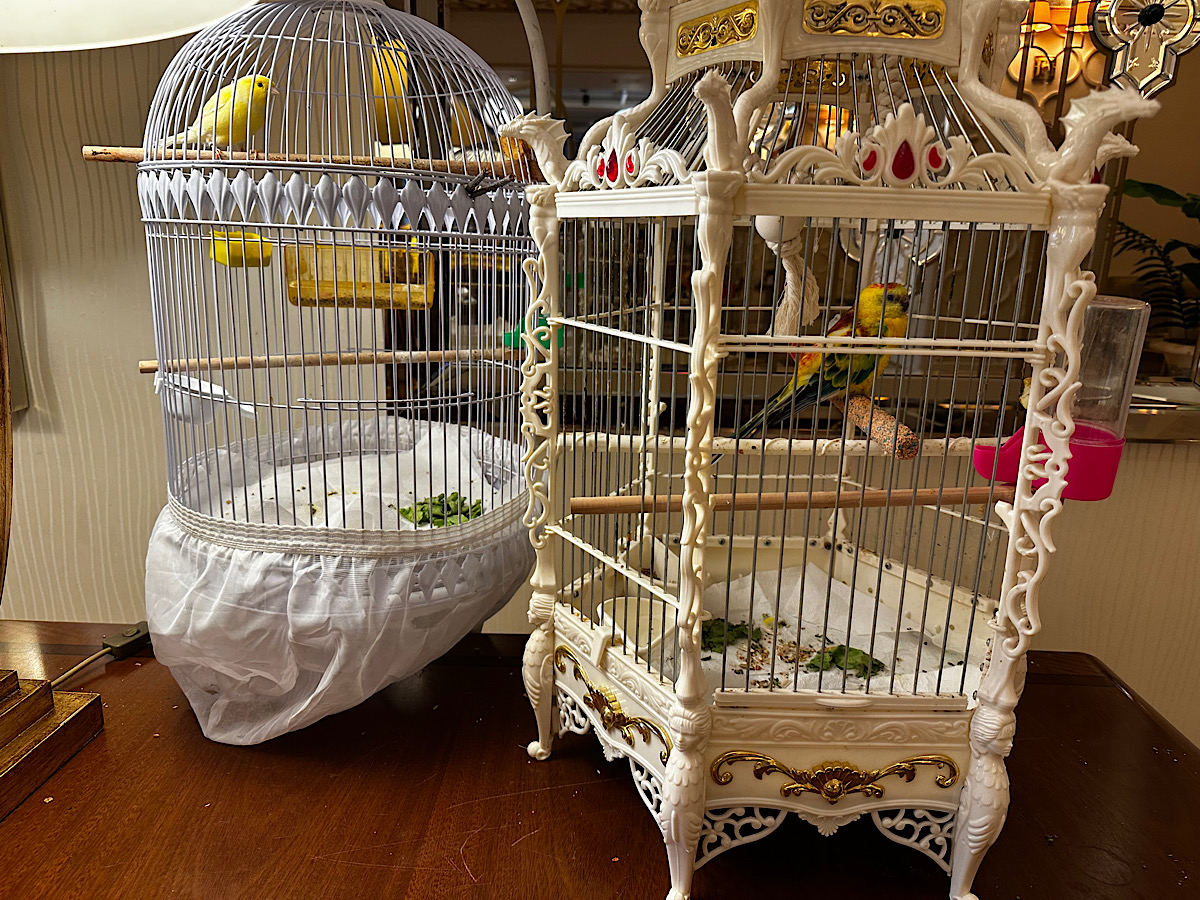 IMG_7616 Published July 15, 2025 at 1200 × 900 in May 21, 2025: Exploring Ashgabat and Its Surroundings. / Next → Live birds in the breakfast room at the Diwan hotel.