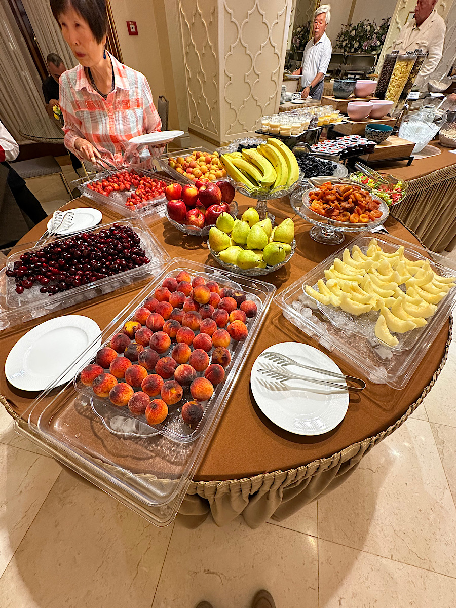 IMG_7617 Published July 16, 2025 at 900 × 1200 in May 21, 2025: Exploring Ashgabat and Its Surroundings. ← Previous / Next → Lavish breakfast buffet with lots of fresh fruit.