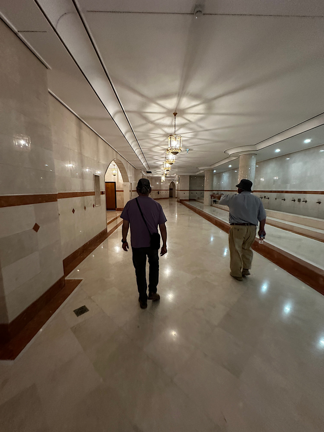 IMG_ Published July 15, 2025 at 1125 × 1500 in May 21, 2025: Exploring Ashgabat and Its Surroundings. ← Previous / Next → The lower level of the mosque where the washrooms and cleansing areas are located. Note everything is made of marble.