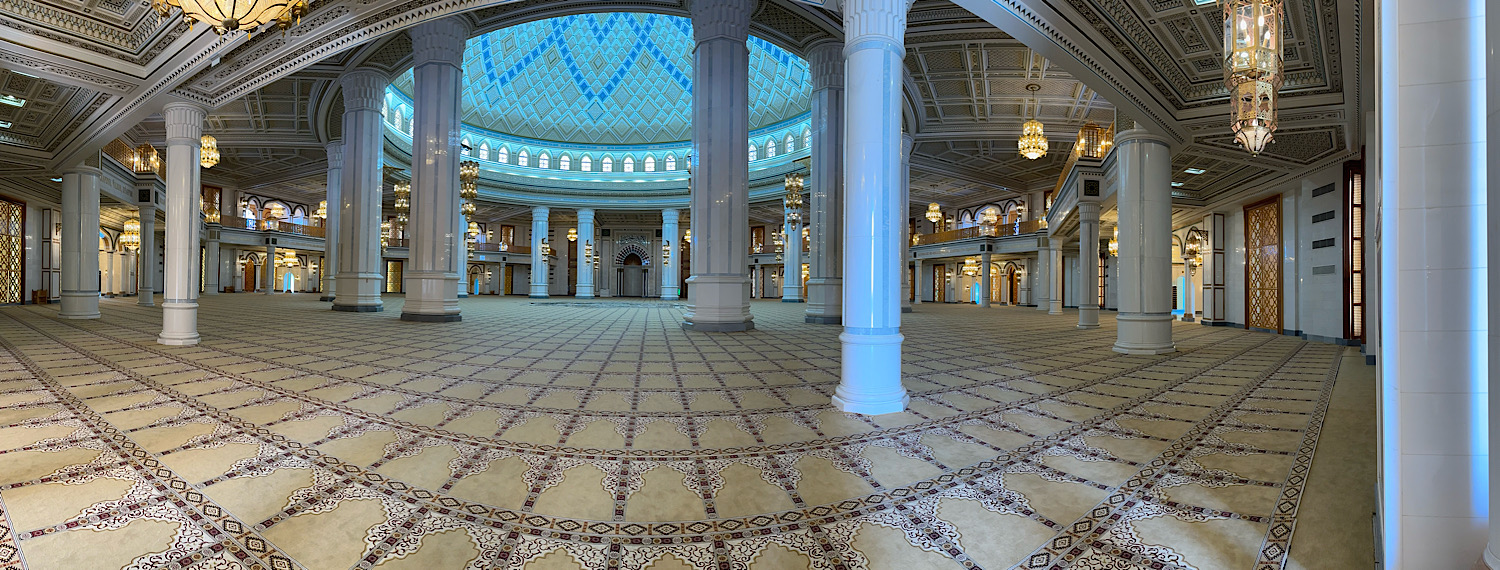 IMG_7639 Published July 15, 2025 at 1500 × 570 in May 21, 2025: Exploring Ashgabat and Its Surroundings. ← Previous / Next → Inside the mosque.