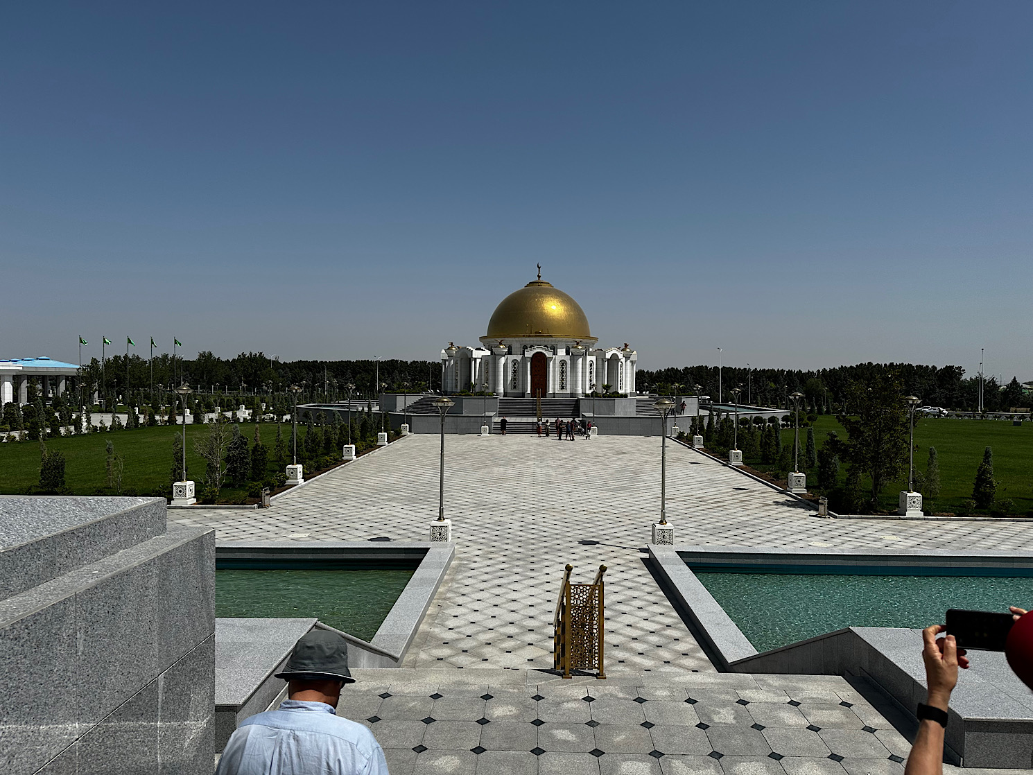IMG_7646 Published July 15, 2025 at 1490 × 1118 in May 21, 2025: Exploring Ashgabat and Its Surroundings. ← Previous / Next → Looking at the Turkmenbashi mausoleum from the stairs of the mosque.