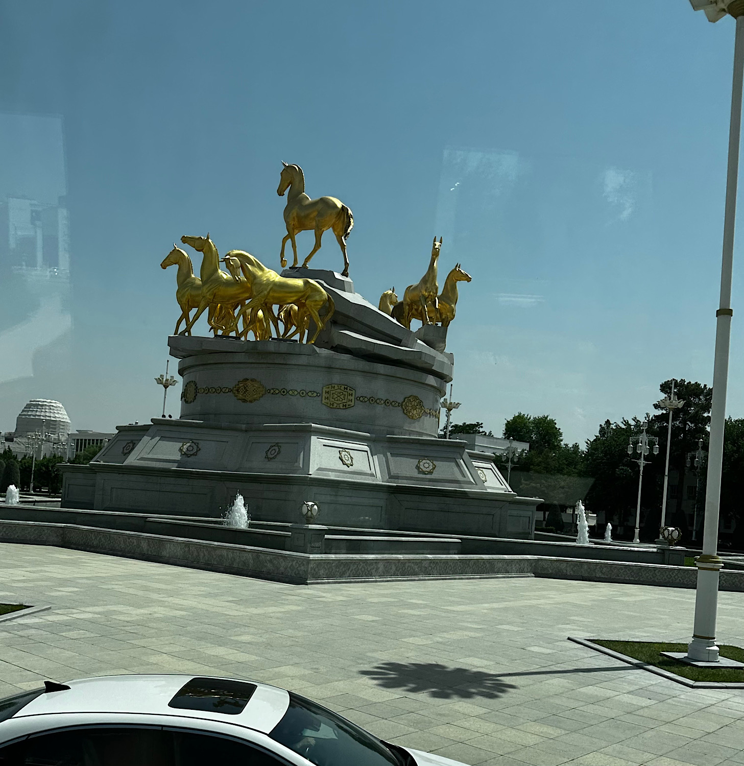 IMG_7668 Published July 16, 2025 at 1457 × 1500 in May 21, 2025: Exploring Ashgabat and Its Surroundings. ← Previous / Next → Another statue at a round-a-boute.