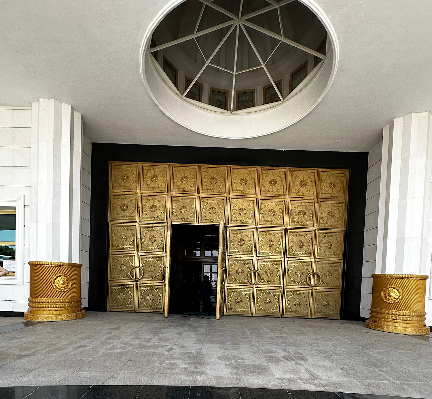 IMG_7670 Published July 16, 2025 at 1500 × 1383 in May 21, 2025: Exploring Ashgabat and Its Surroundings. ← Previous / Next → Golden doors leading into the museum.
