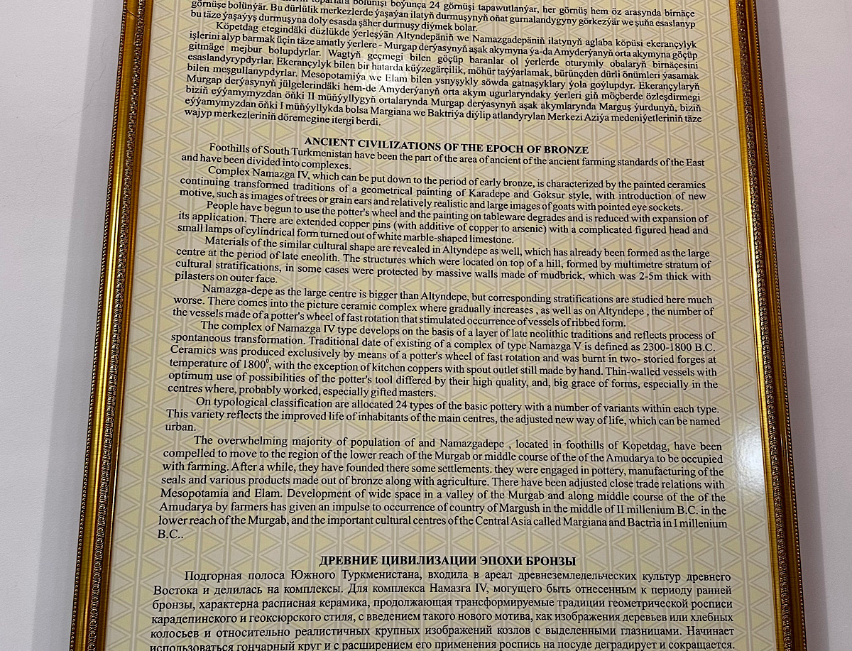IMG_7674 Published July 16, 2025 at 1200 × 917 in May 21, 2025: Exploring Ashgabat and Its Surroundings. ← Previous / Next → Each period of the history of the area had detailed descriptions of that era.