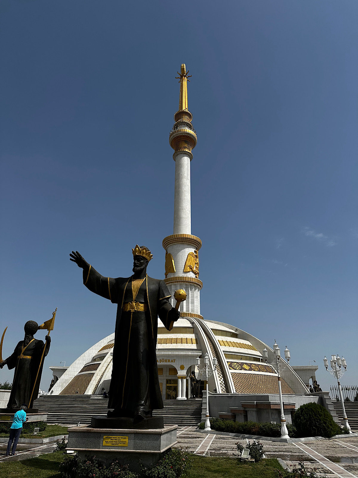 IMG_7834 Published July 17, 2025 at 1200 × 1600 in May 22, 2025: A Visit to the Ancient City of Merv. ← Previous / Next → The heroes of Turkmenistan are memorialized by statues located around the monument.