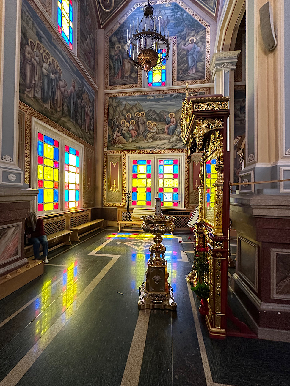 IMG_6299 Published May 8, 2025 at 975 × 1300 in May 4, 2025: Touring Almaty. ← Previous / Next → Stain glass windows create a serene atmosphere.