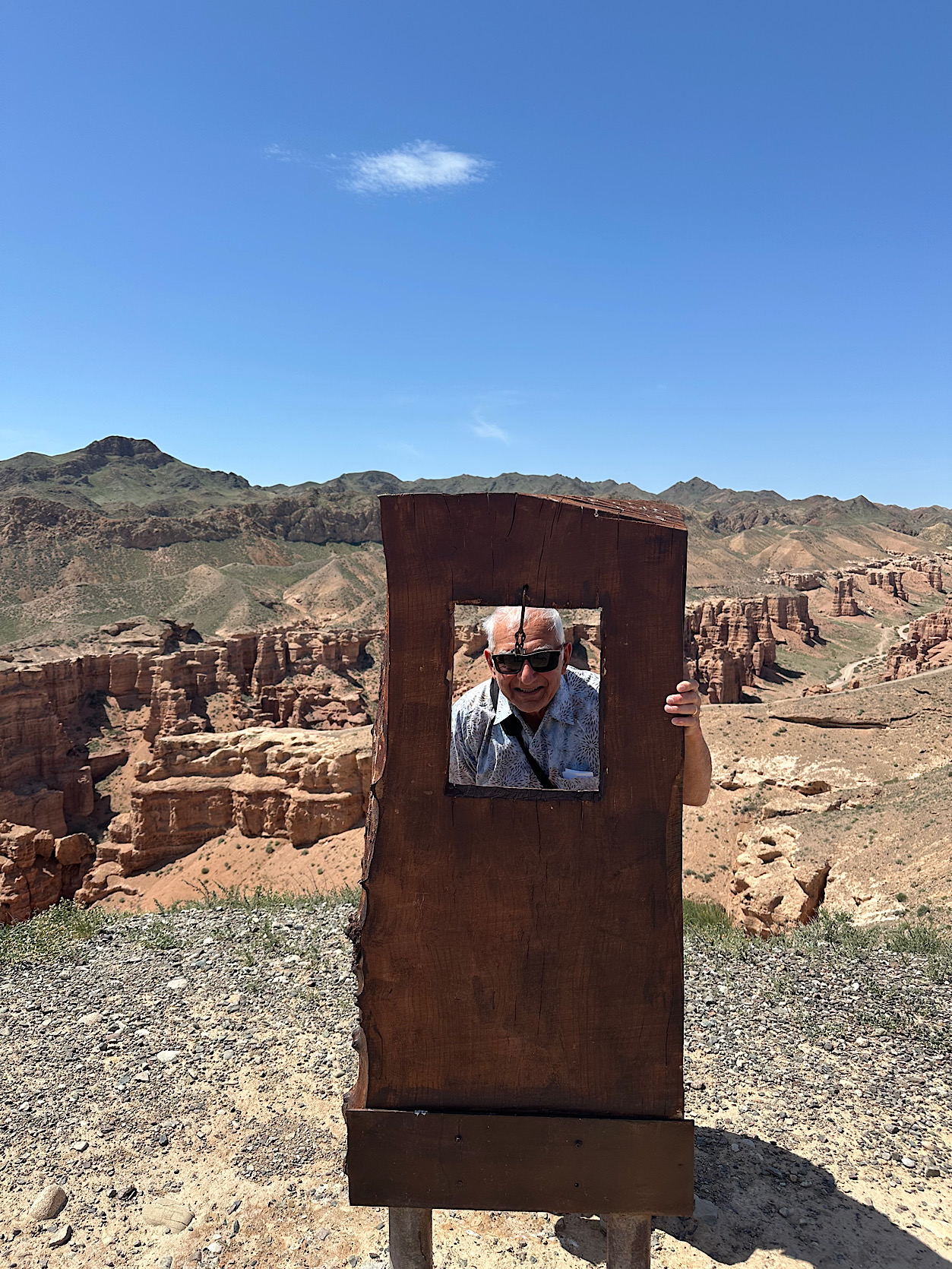 IMG_6346 Published May 9, 2025 at 1253 × 1670 in May 5, 2025: On Our Way to Kyrgyzstan, the Next “Stan” on Our List! ← Previous / Next → Not sure why this piece of metal is here. We used it as a photo op.