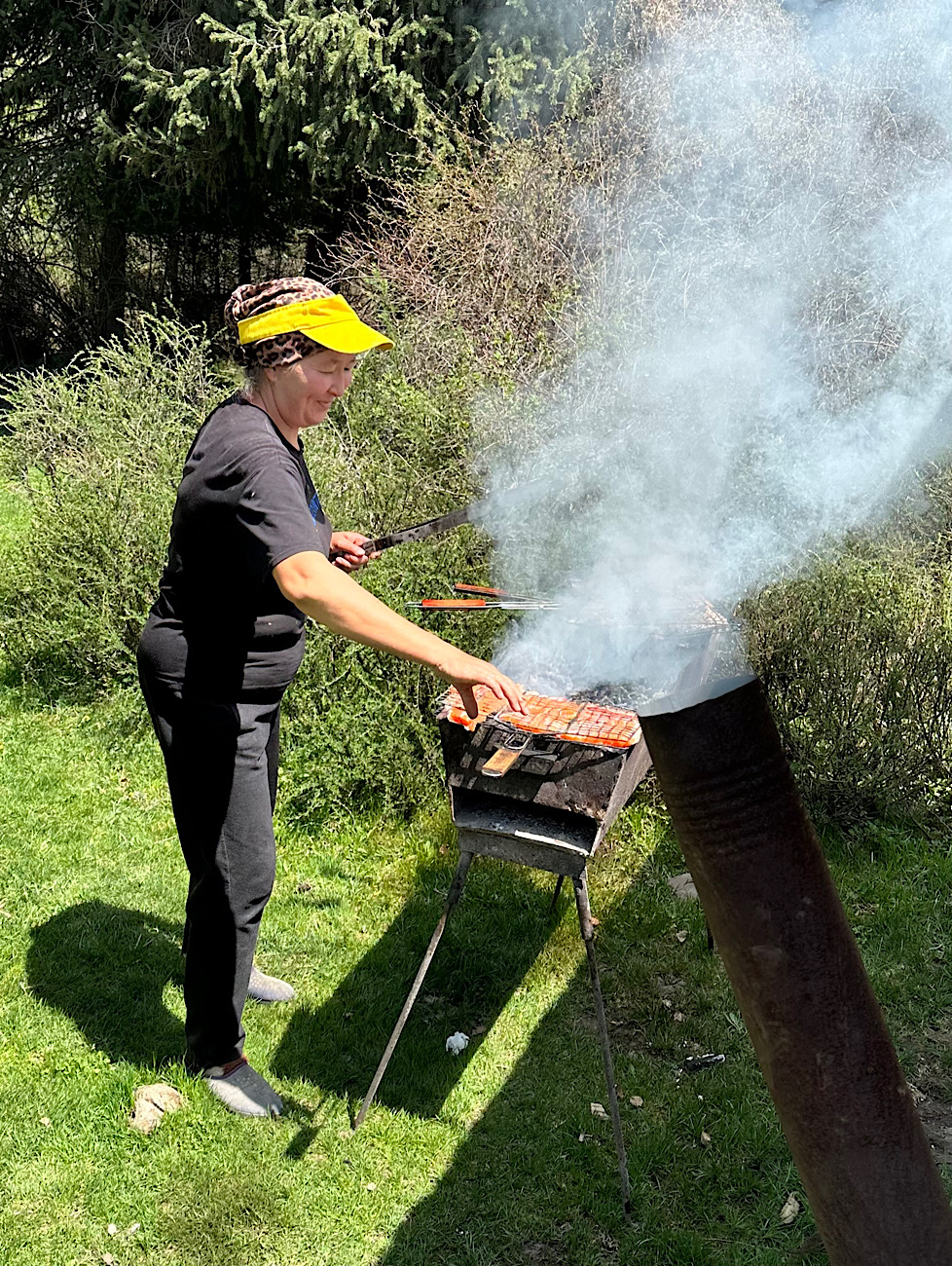 IMG_6448 Published May 16, 2025 at 978 × 1300 in May 6, 2025: Exploring Kyrgyzstan. ← Previous / Next → She is barbecuing locally caught trout!