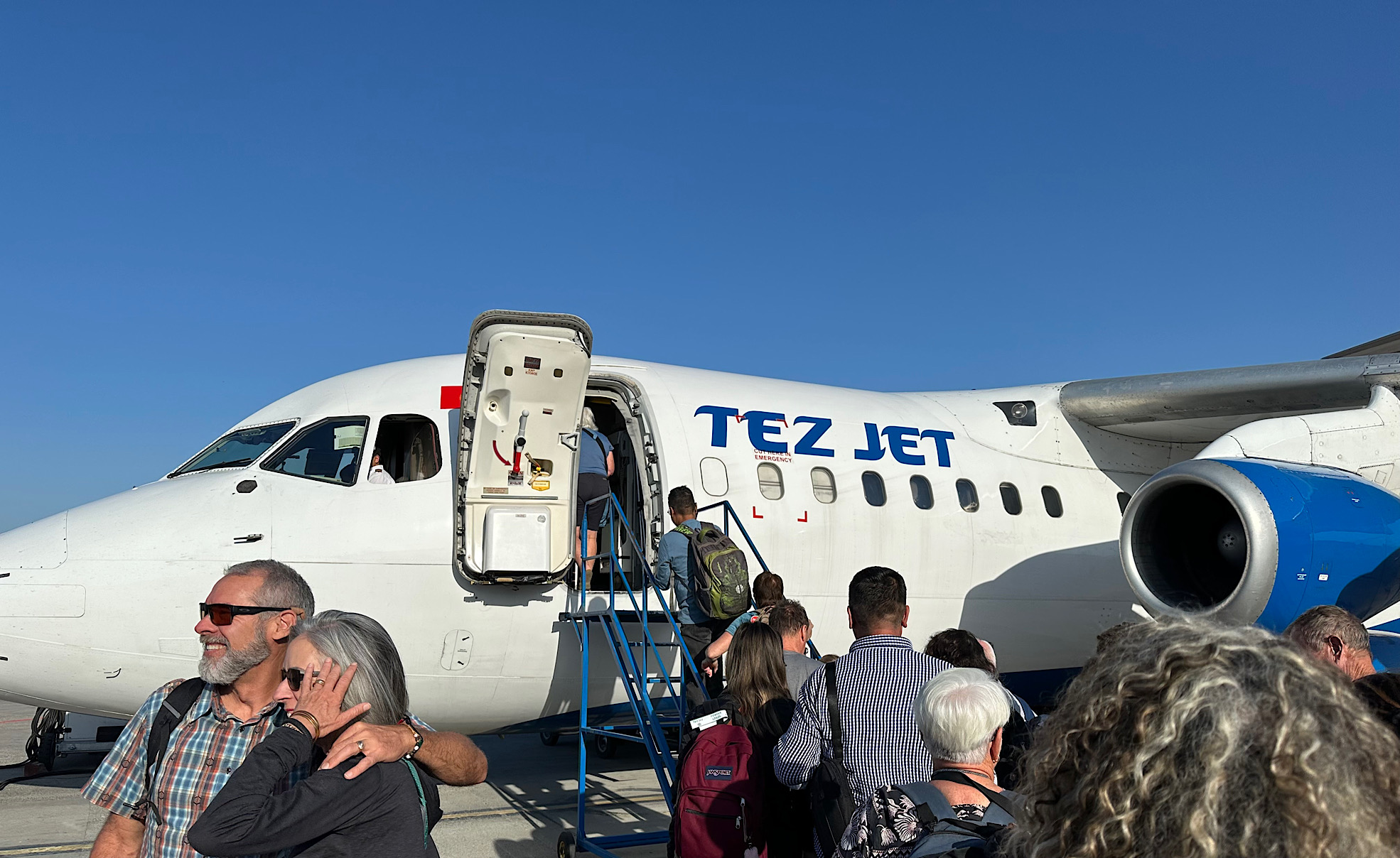 IMG_6603 Published May 28, 2025 at 1970 × 1208 in May 8, 2025: Onward to Uzbekistan! ← Previous / Next → Our regional jet ride to Osh.