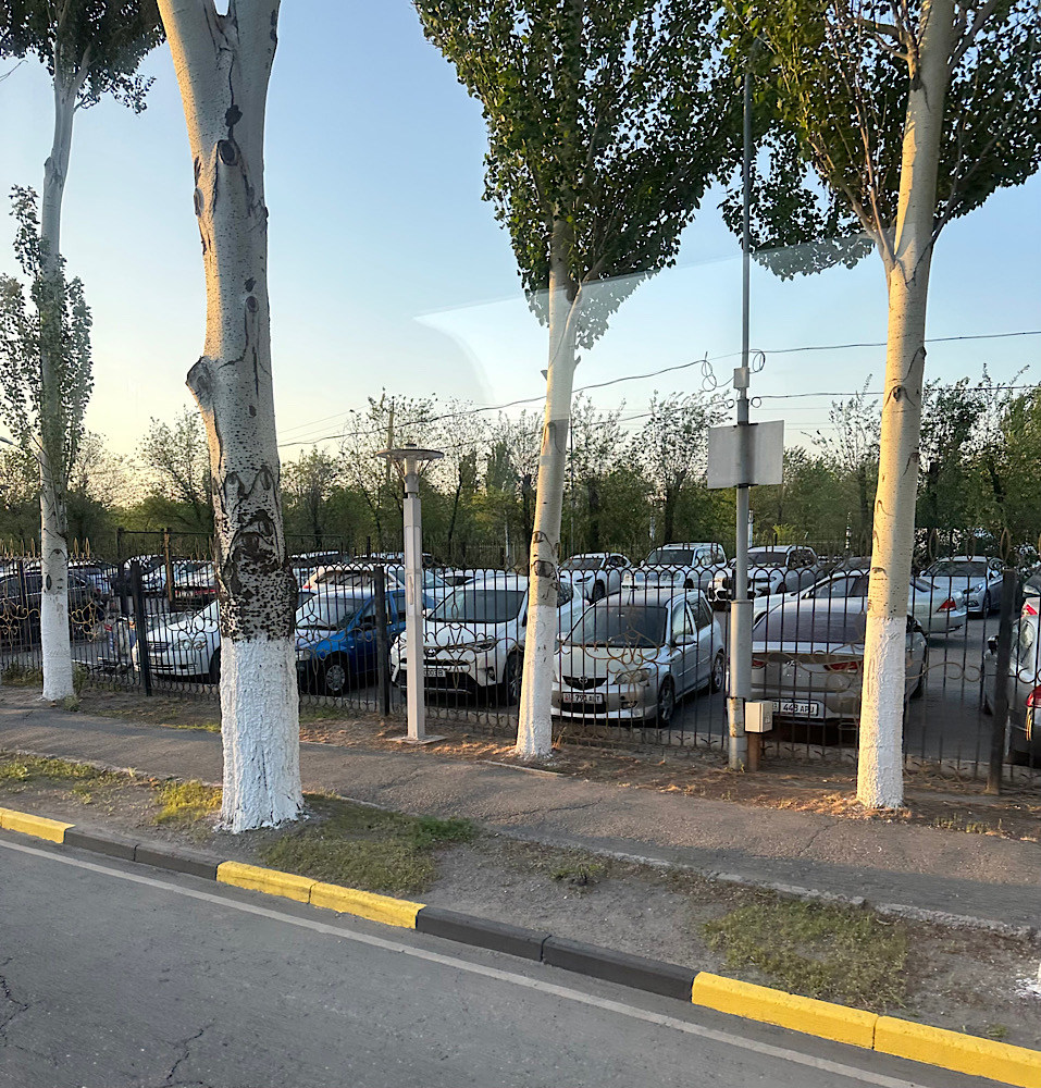 IMG_6615 Published May 29, 2025 at 957 × 1000 in May 8, 2025: Onward to Uzbekistan! ← Previous / Next → All the trees have been painted to deter insects.