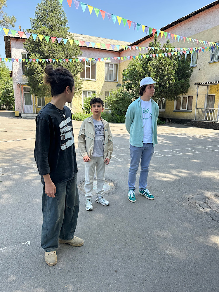 IMG_6616 Published May 29, 2025 at 750 × 1000 in May 8, 2025: Onward to Uzbekistan! ← Previous / Next → The three students who led us on a tour of their school.