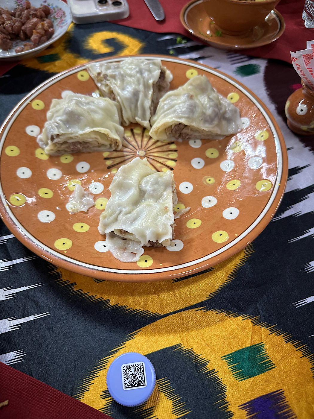 IMG_6705 Published June 1, 2025 at 1050 × 1400 in May 9, 2025: Seeing What Uzbekistan is All About. ← Previous / Next → Meat filled dumplings that reminded me of Asian fare.