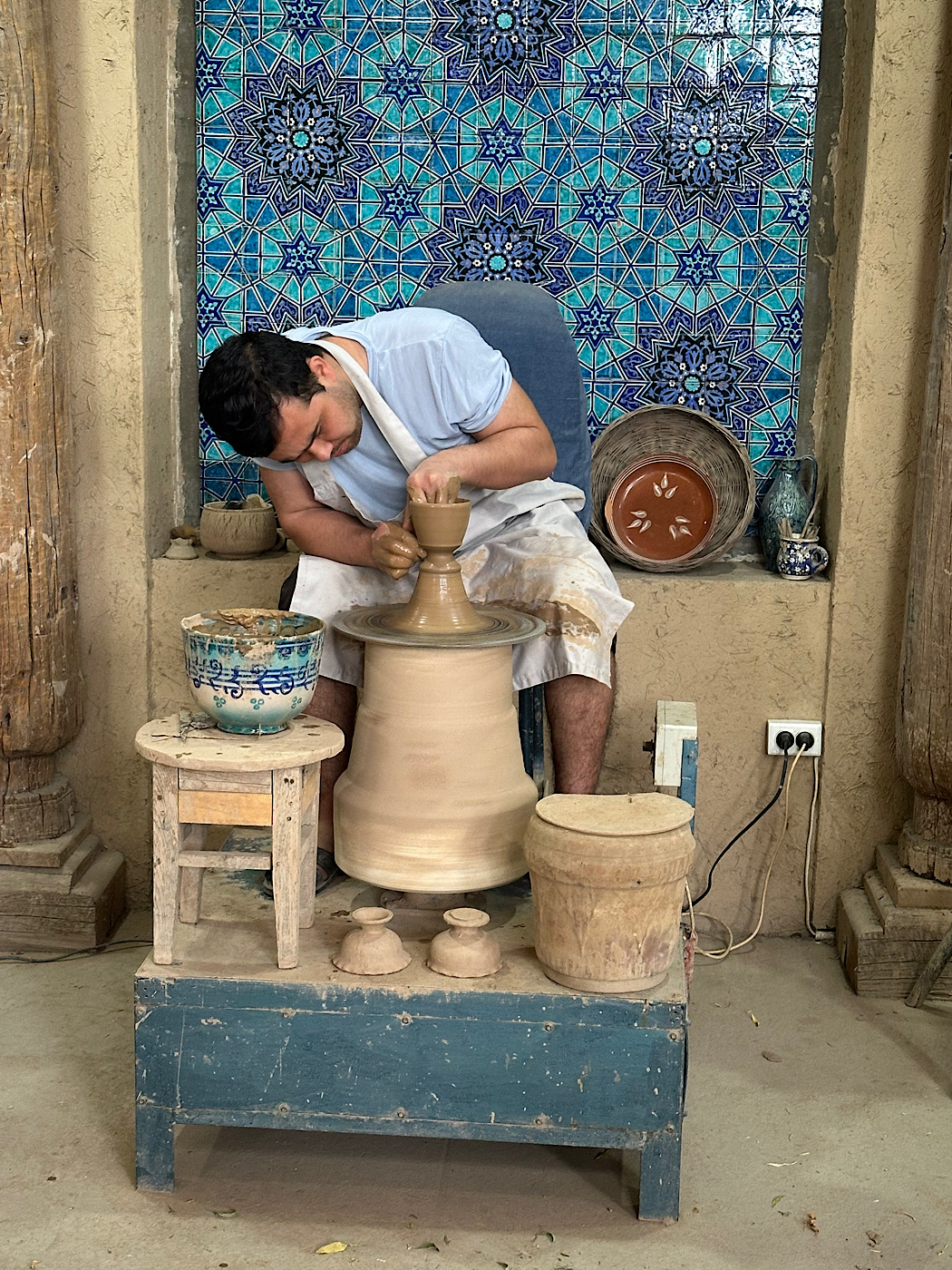IMG_6707 Published June 1, 2025 at 1050 × 1400 in May 9, 2025: Seeing What Uzbekistan is All About. ← Previous / Next → Watching a master at work.