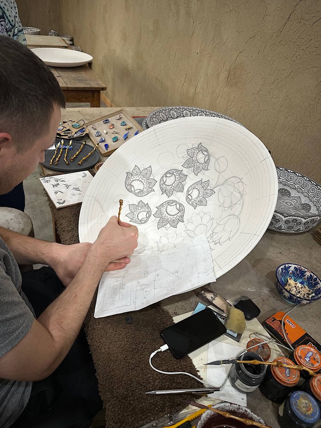 IMG_6708 Published June 1, 2025 at 1125 × 1500 in May 9, 2025: Seeing What Uzbekistan is All About. ← Previous / Next → Drawing the pattern by hand.