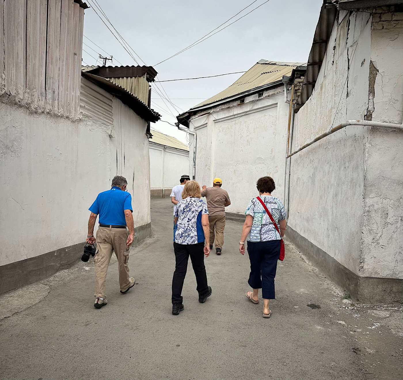 IMG_6714 Published June 1, 2025 at 1400 × 1318 in May 9, 2025: Seeing What Uzbekistan is All About. ← Previous / Next → Walking down an alley to get to a neighborhood silk “factory”.