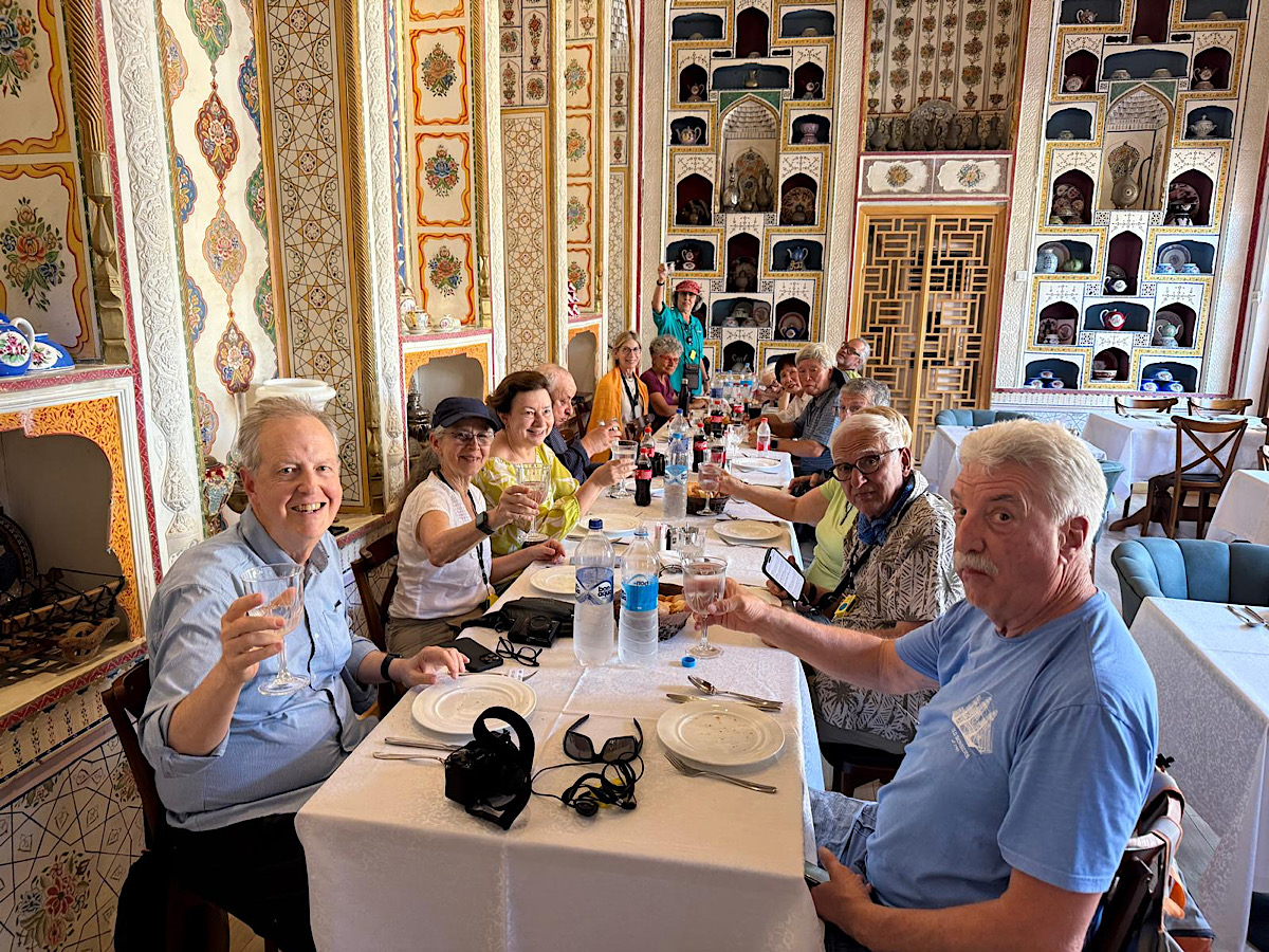 IMG_7188 Published June 17, 2025 at 1200 × 900 in May15, 2025: Exploring the Ancient City of Bukhara ← Previous / Next → Having a great lunch in an air conditioned room in a lovely restaurant.