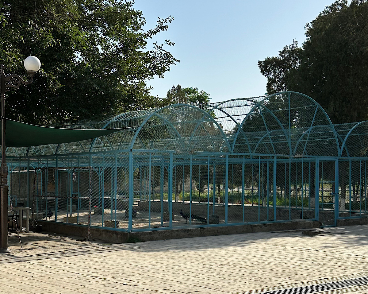 IMG_7200 Published June 17, 2025 at 1200 × 958 in May15, 2025: Exploring the Ancient City of Bukhara ← Previous / Next → There is a zoo (or aviary). Today there were some peacocks in it.