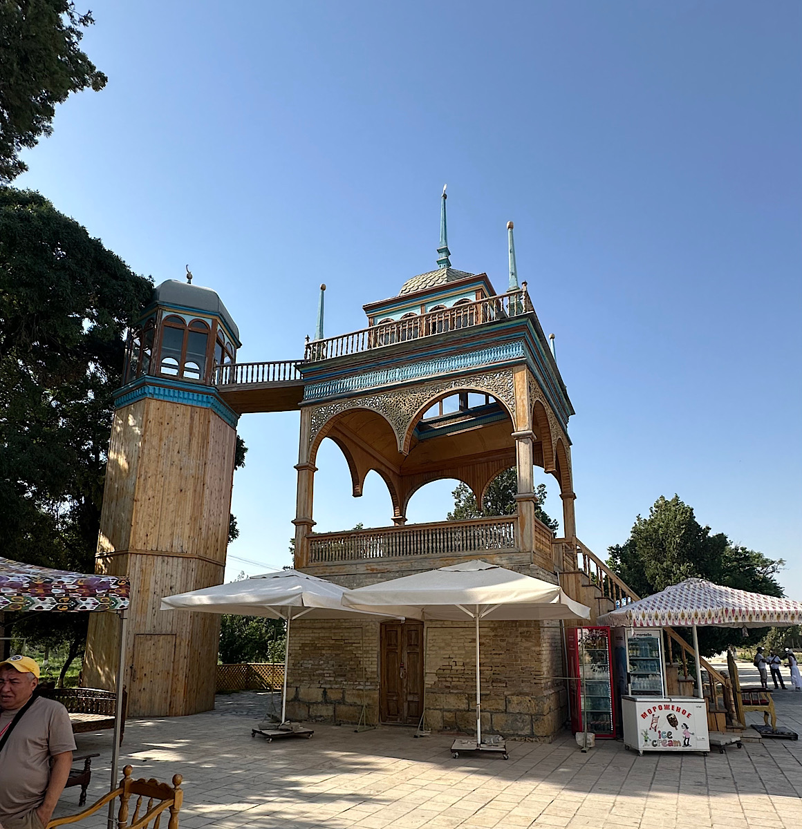IMG_7208 Published June 17, 2025 at 1160 × 1200 in May15, 2025: Exploring the Ancient City of Bukhara ← Previous / Next → The Emir’s “viewing” stand overlooking the pool where his harem frolicked!