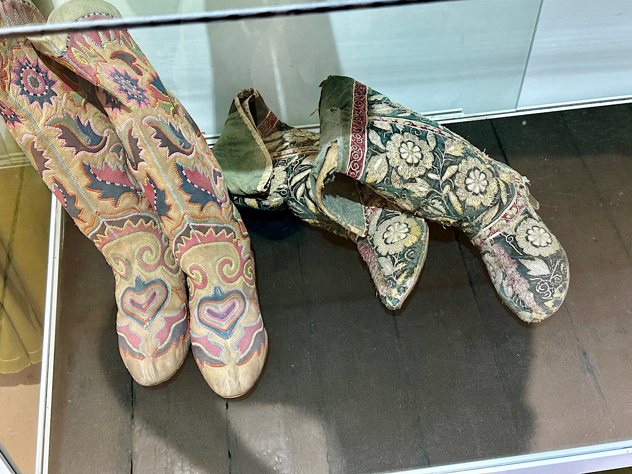 IMG_7228 Published June 17, 2025 at 1300 × 975 in May15, 2025: Exploring the Ancient City of Bukhara ← Previous / Next → Elaborate lady boots on display in one of the decorative arts museum in the complex.