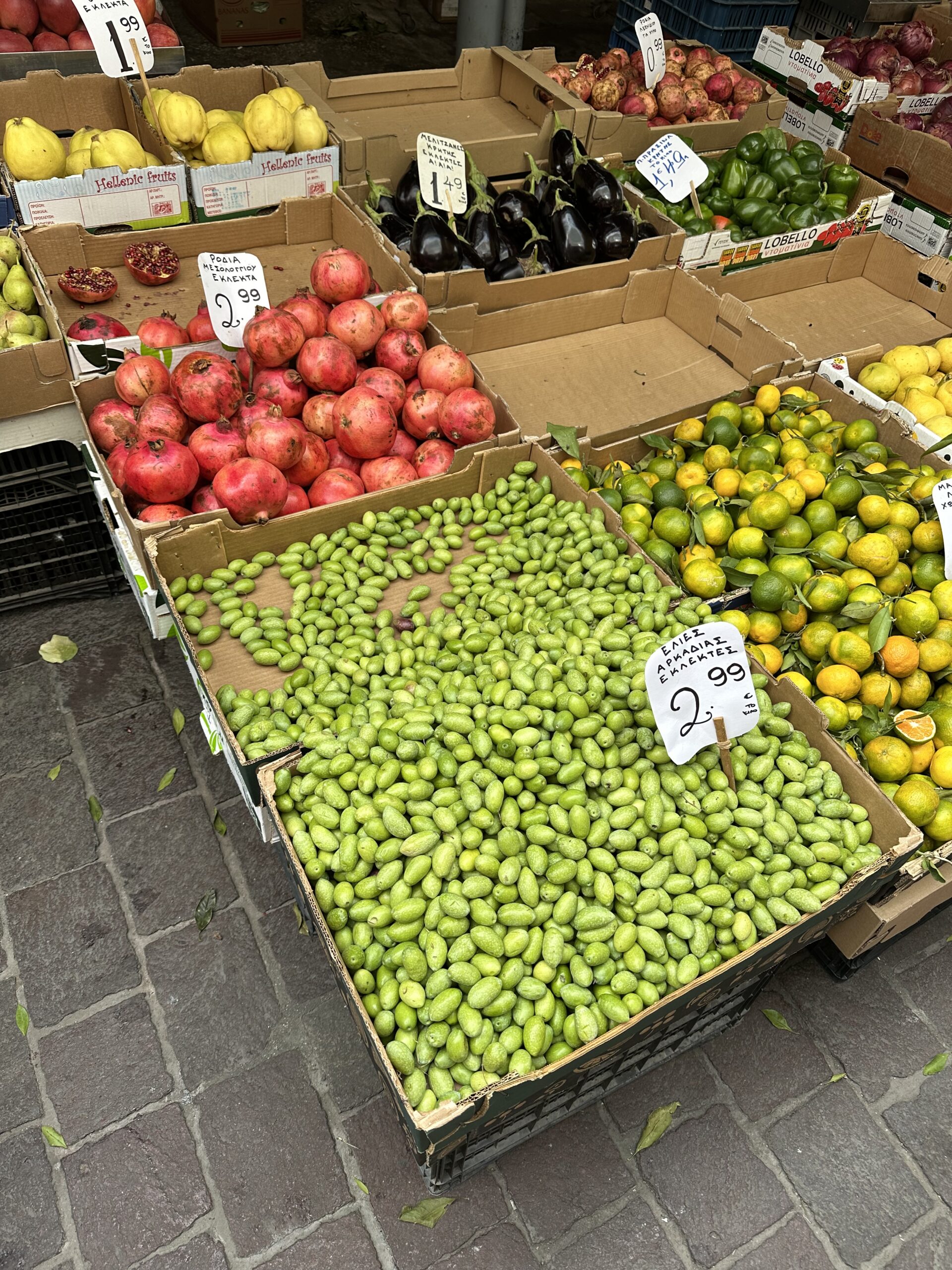 IMG_7509 Published October 26, 2025 at 1920 × 2560 in October 13-14, 2025: Leaving on a Jet Plane! ← Previous / Next → Produce market. The olives are bitter when picked; they need to be “brined” before being palatable .