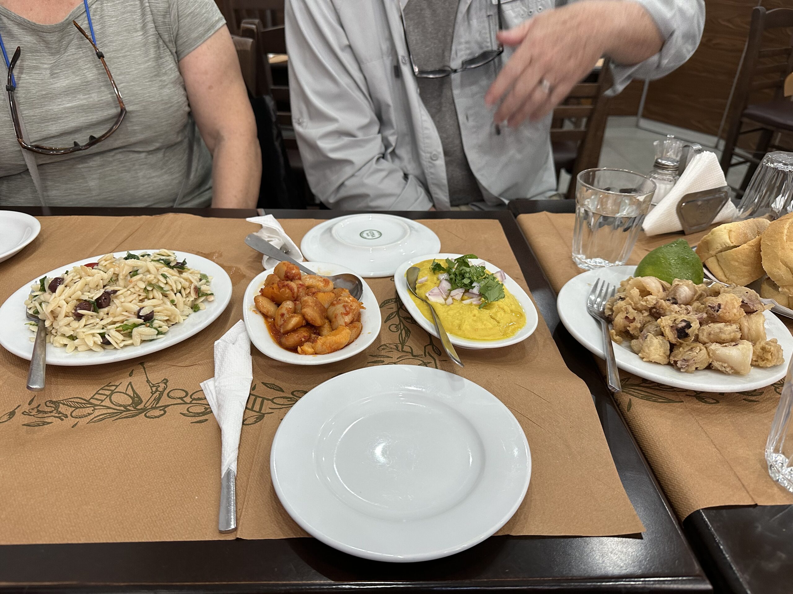 IMG_7516 Published October 26, 2025 at 2560 × 1920 in October 13-14, 2025: Leaving on a Jet Plane! ← Previous / Next → Calamari, butter beans, orzo. We are getting full!