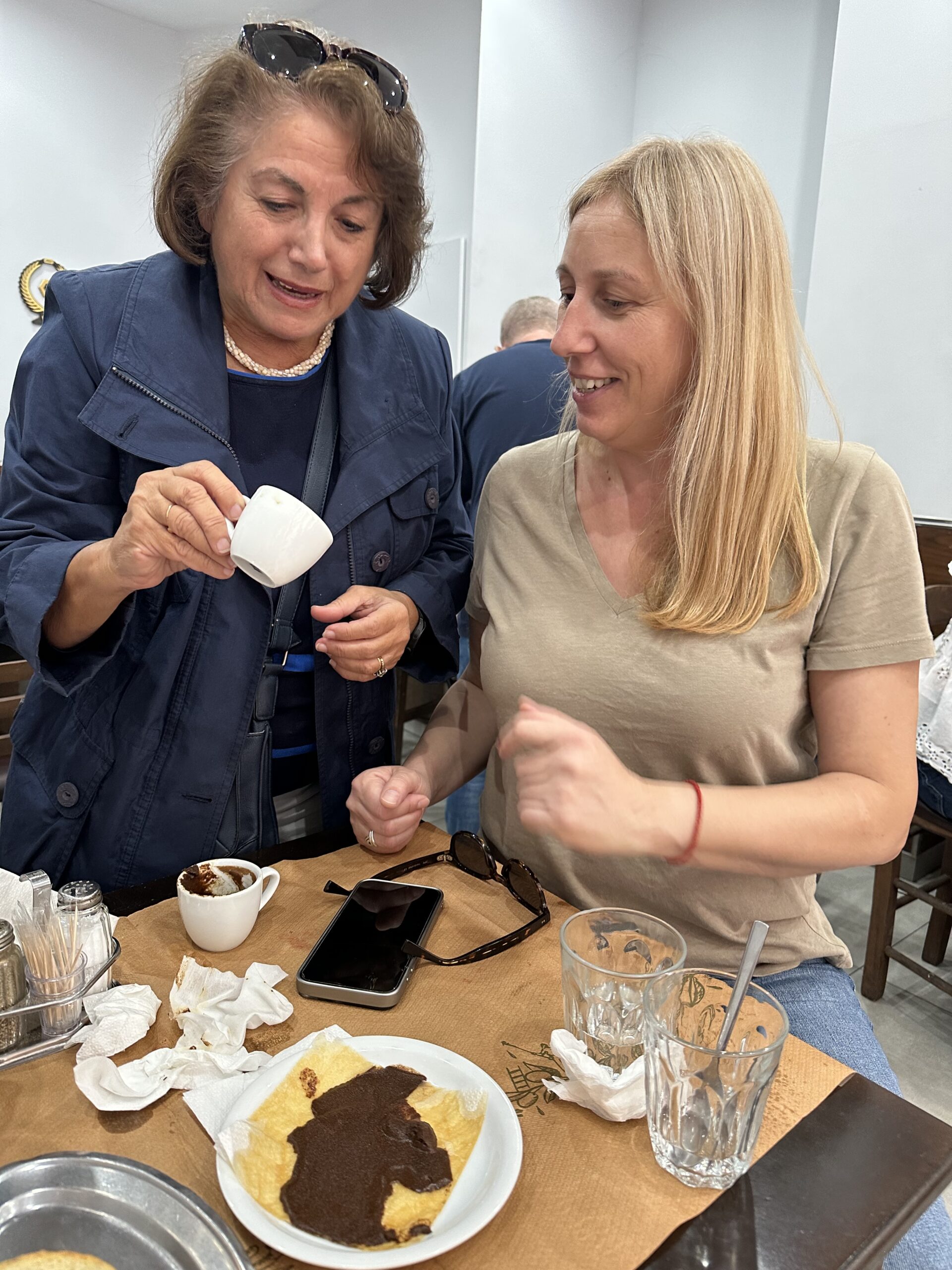 IMG_7529 Published October 26, 2025 at 1920 × 2560 in October 13-14, 2025: Leaving on a Jet Plane! ← Previous / A lady stopped by to help Boula do a “reading” of our coffee grounds.