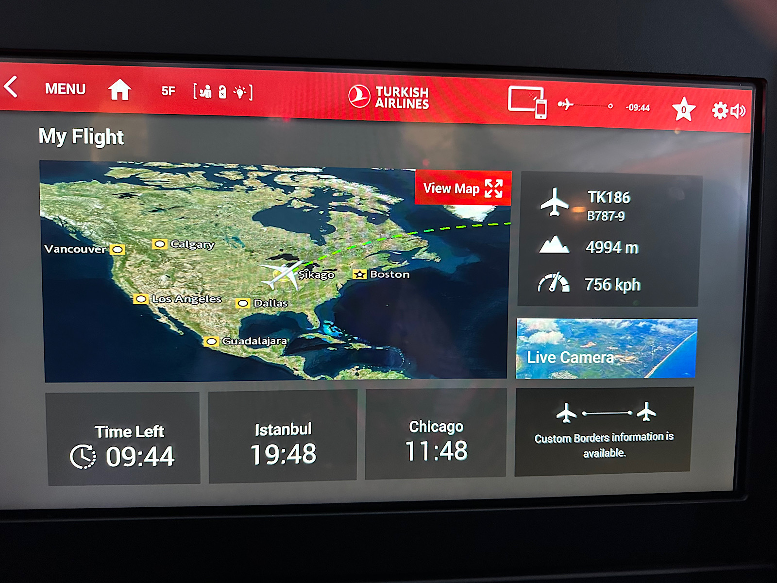 IMG_8048 Published October 14, 2025 at 1600 × 1200 in October 13-14, 2025: Leaving on a Jet Plane! ← Previous / Next → Our route was pretty much over the polar region. The trip was less than 10 hours to Istanbul.