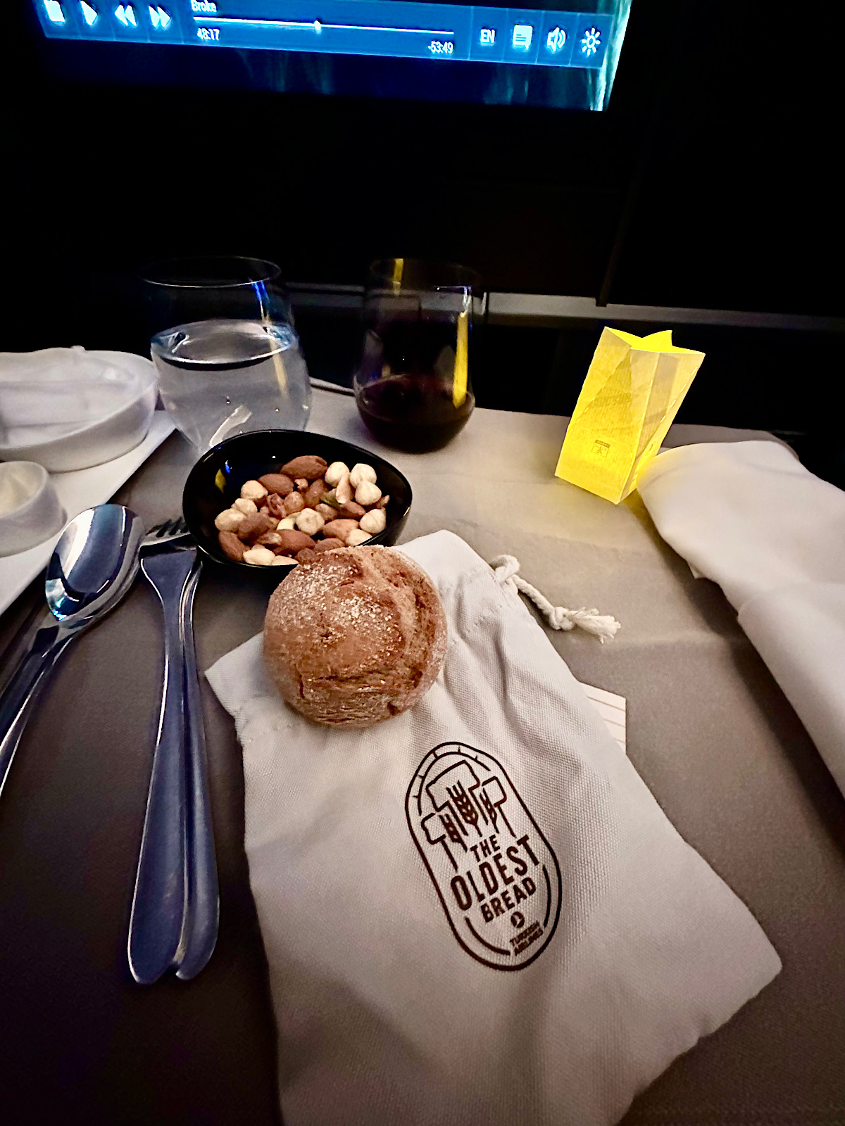 IMG_8050 Published October 14, 2025 at 1200 × 1600 in October 13-14, 2025: Leaving on a Jet Plane! ← Previous / Next → They serve what they claim is the oldest bread in the world, dating back 12,000 years.