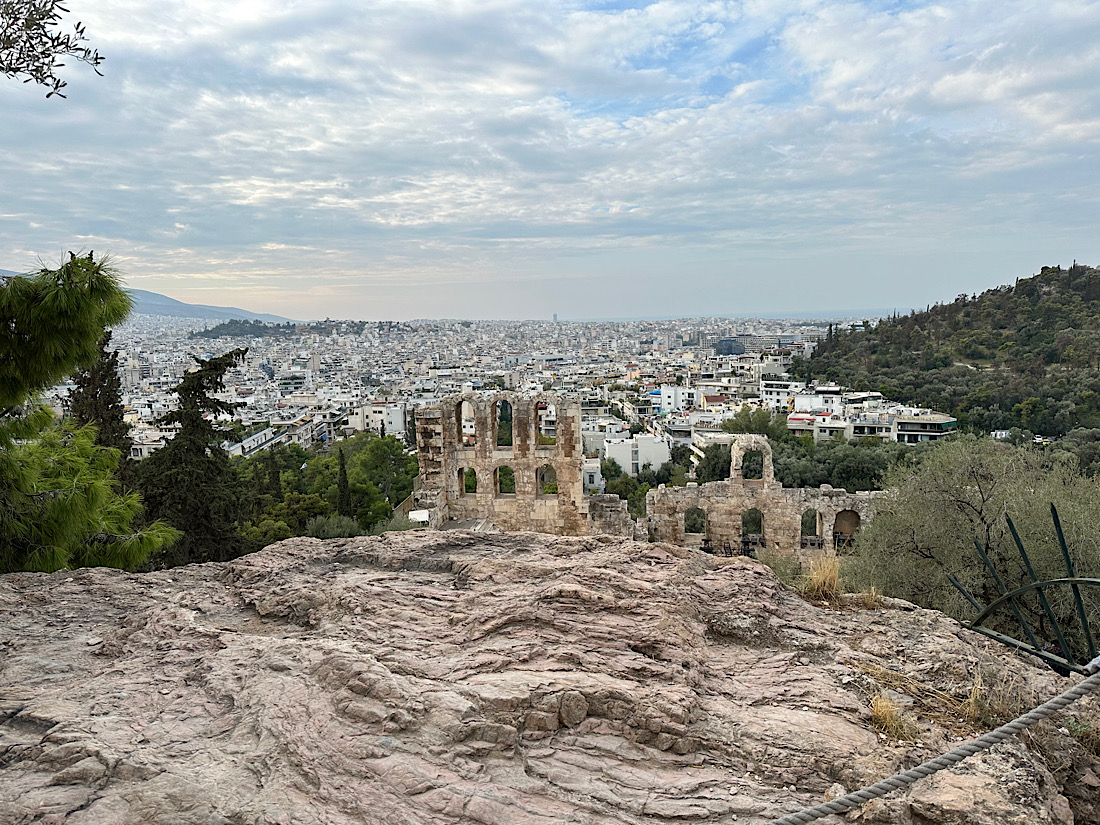 IMG_8129 Published October 26, 2025 at 1100 × 825 in October 15, 2025: Food Tour of Athens ← Previous / Next → View of the city and distant waters of the Aegean Sea.