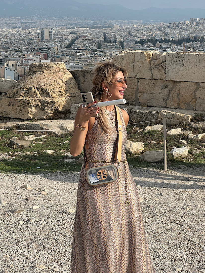 IMG_8151 Published October 26, 2025 at 825 × 1100 in October 15, 2025: Food Tour of Athens ← Previous / Next → She seemed really out of place,wearing a glittery dress and shoes. I suspect she was an “influencer” making a posting.