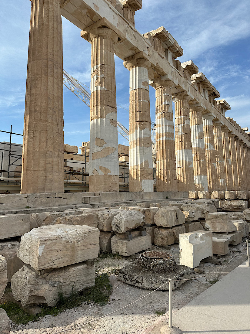 IMG_8152 Published October 26, 2025 at 825 × 1100 in October 15, 2025: Food Tour of Athens ← Previous / Next → Note the white color on some of the columns. This is what the marble originally looked like; it changes color as it ages.