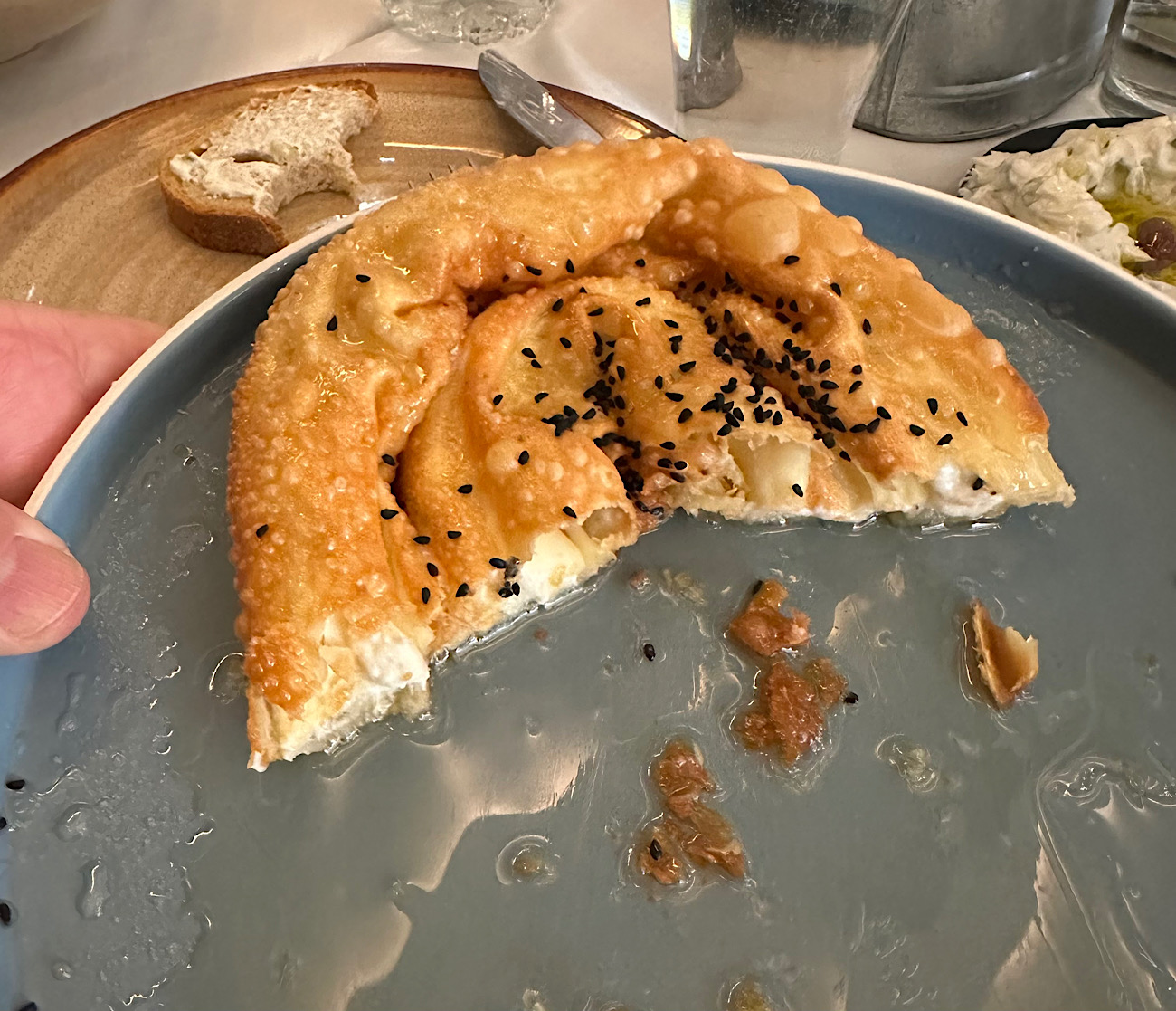 IMG_8186 Published October 26, 2025 at 1300 × 1117 in October 15, 2025: Food Tour of Athens ← Previous / Next → A warm cheesy appetizer.