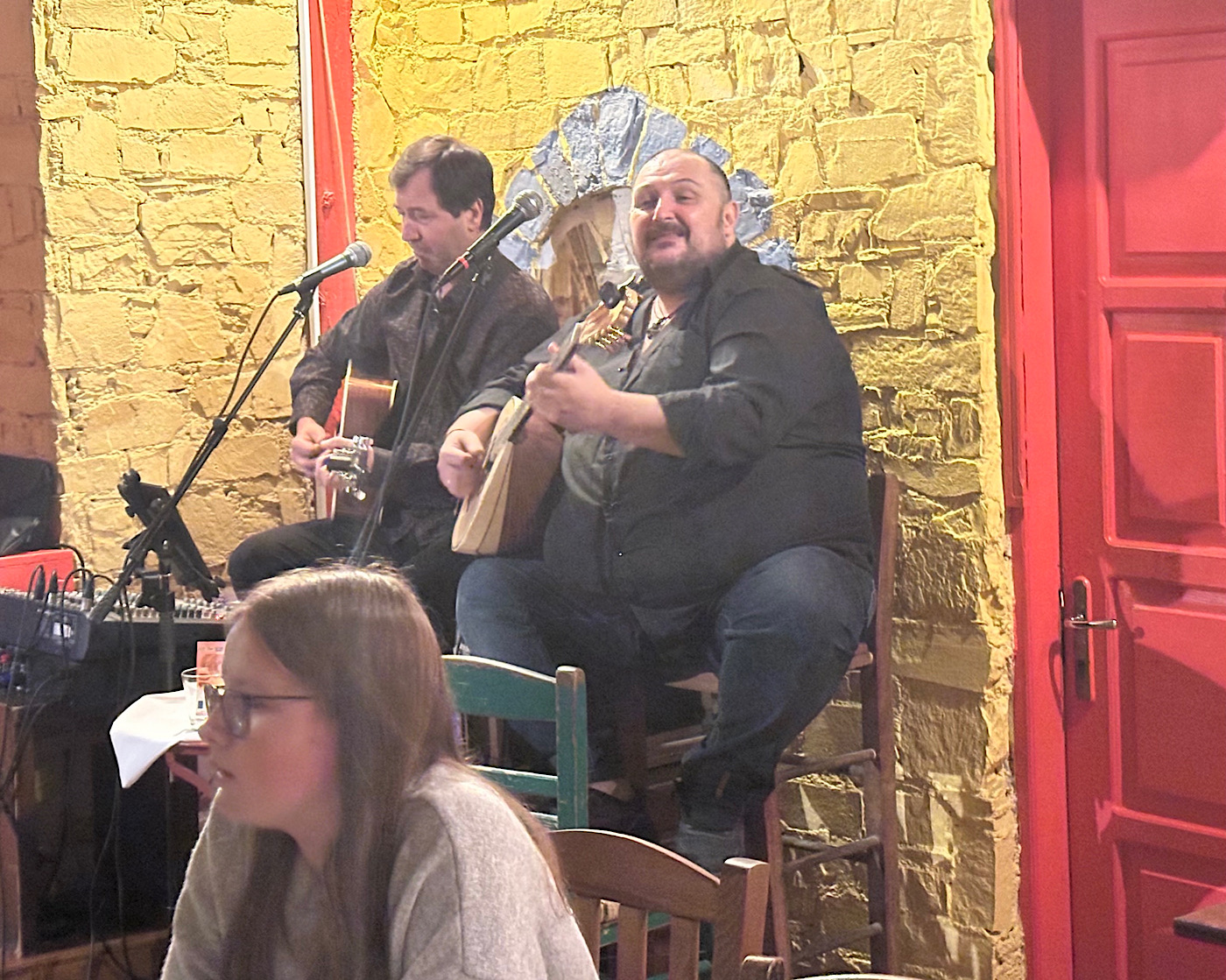 IMG_8196 Published October 26, 2025 at 1400 × 1119 in October 15, 2025: Food Tour of Athens ← Previous / Next → Our local musicians. Across the way (same restaurant) there was another group playing. There was music everywhere.