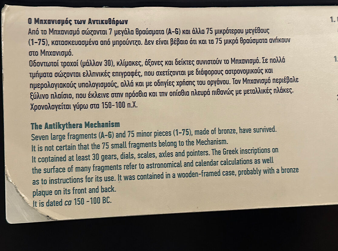 IMG_8249 Published October 30, 2025 at 1115 × 830 in October 17, 2025: Heading to the Open Sea ← Previous / Next → An important discovery on the shipwreck was the antikythera mechanism, thought to be the world’s first analog computer!